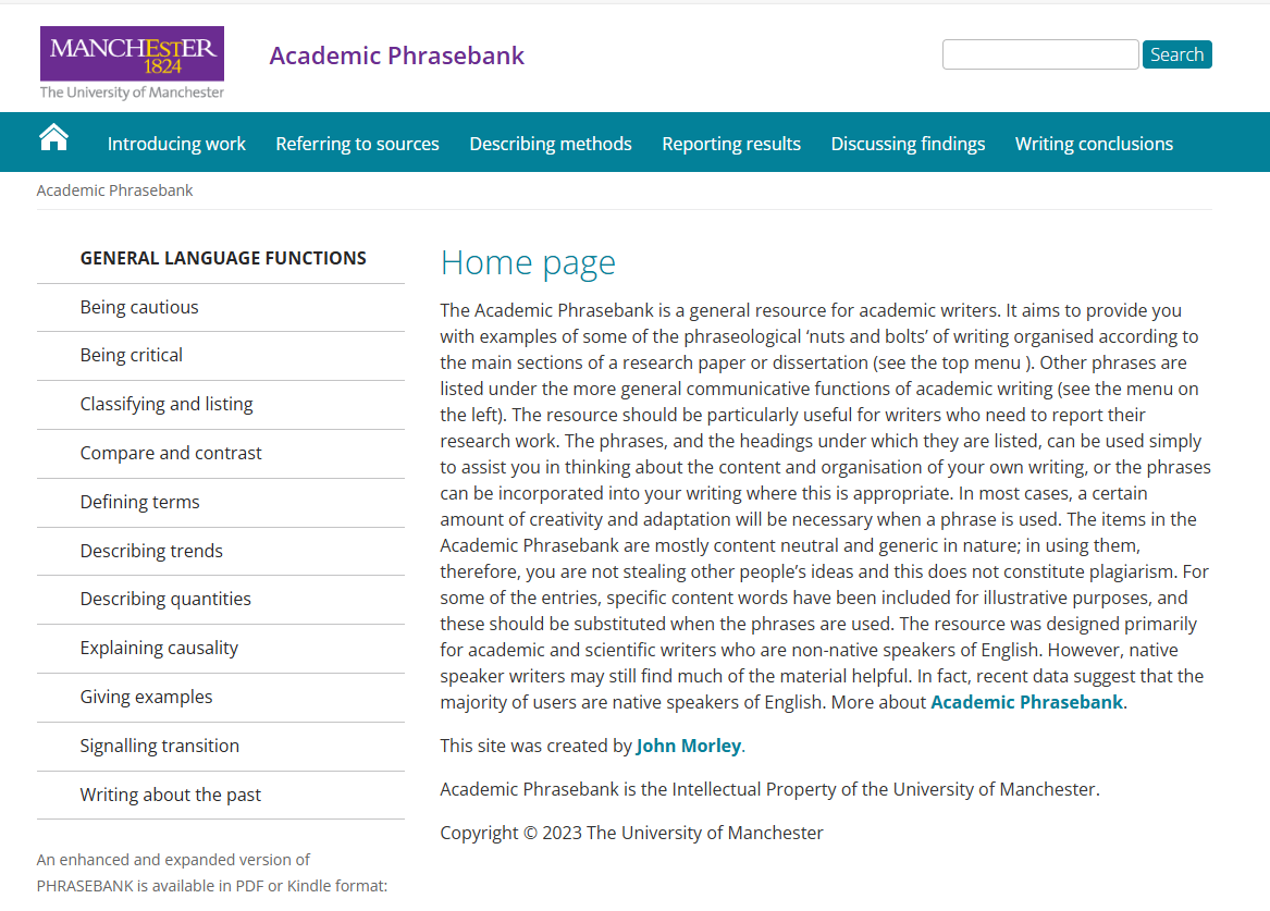 曼彻斯特大学学术短语库(Academic Phrasebank):学术写作的得力助手