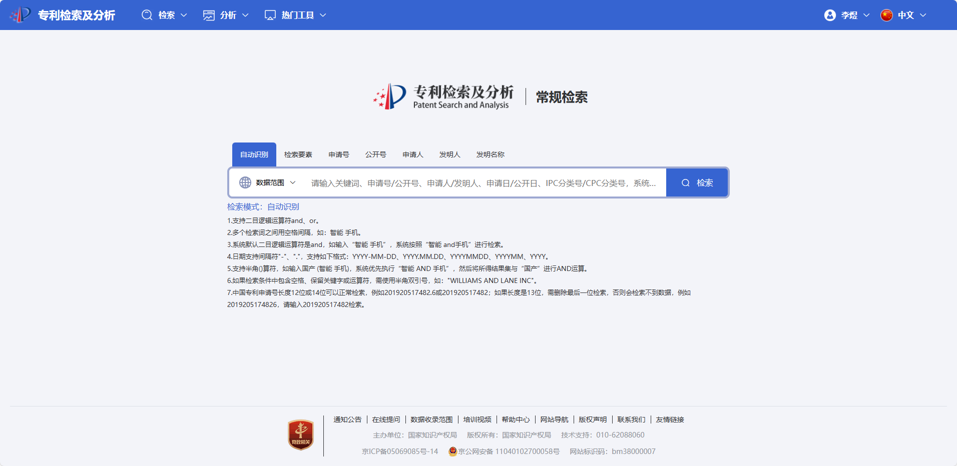 网址:https://pss-system.cponline.cnipa.gov.cn/conventionalSearch