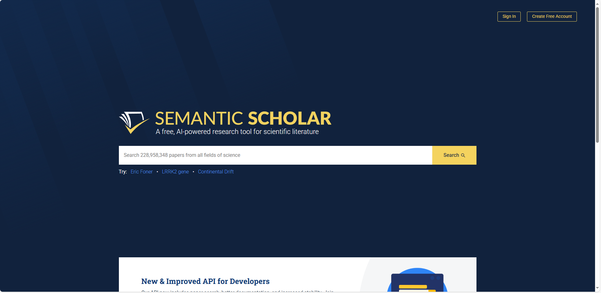 Semantic Scholar 是由艾伦人工智能研究所(Allen Institute for AI)开发的免费人工智能驱动的学术搜索引擎,旨在帮助科研人员高效发现、理解和管理科学文献。自 2015 年发布以来,Semantic Scholar 已收录超过 2 亿篇学术论文,涵盖计算机科学、生物医学、物理、社会科学等多个领域。