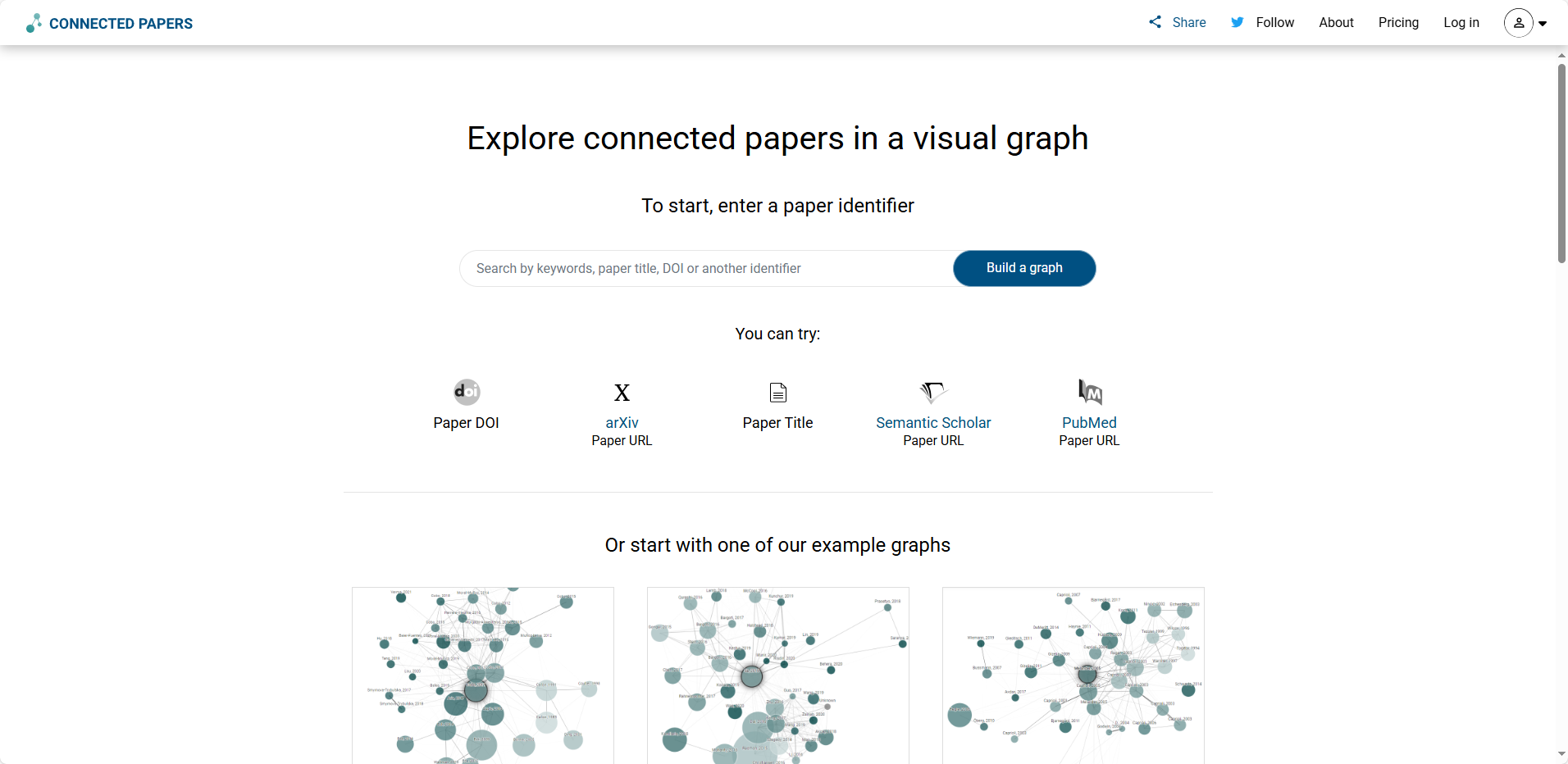 - 图谱式文献探索:用户输入一篇种子论文,Connected Papers 会分析约 50,000 篇相关论文,构建一个图形网络,展示与种子论文在主题、方法或引用关系上的关联。